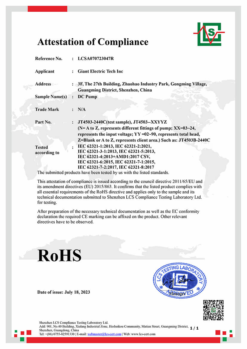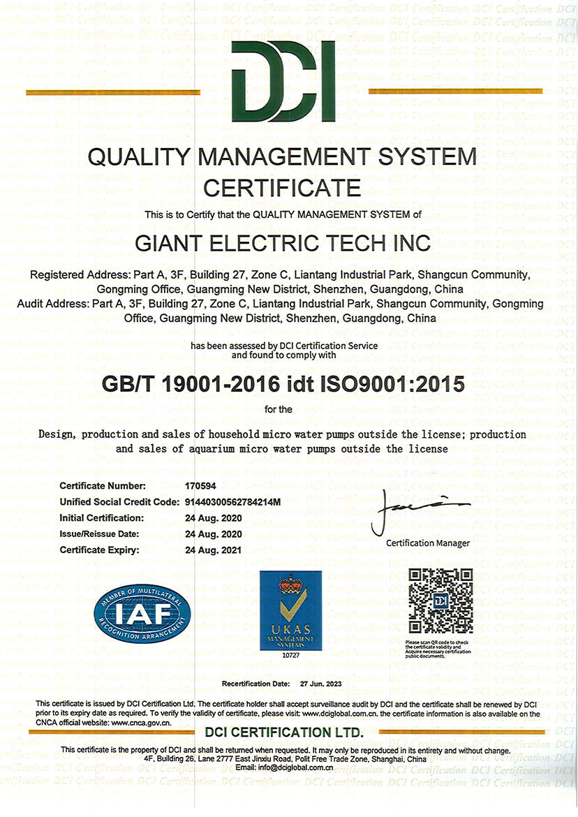 SHENZHEN GIANT ELECTRIC TECH INC. is a high-tech enterprise specializing in the independent research, development, production, and sales of micro pumps. GIANT is located in Guangming New District, Shenzhen, and was established in 2010. GIANT’s factory covers an area of approximately 5,000 m², with a new five-story self-built independent factory in Jiangmen covering 10,000 m², total 15,000 m². The facilities are equipped with advanced production and testing equipment, including eight automated assembly lines, and the employs around 300 people, with a monthly production capacity of 500,000 micro pumps.